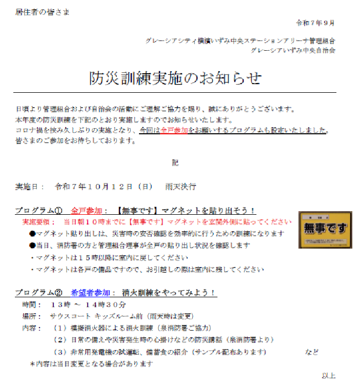 10月12日の防災訓練に参加し非常食を体験しませんか