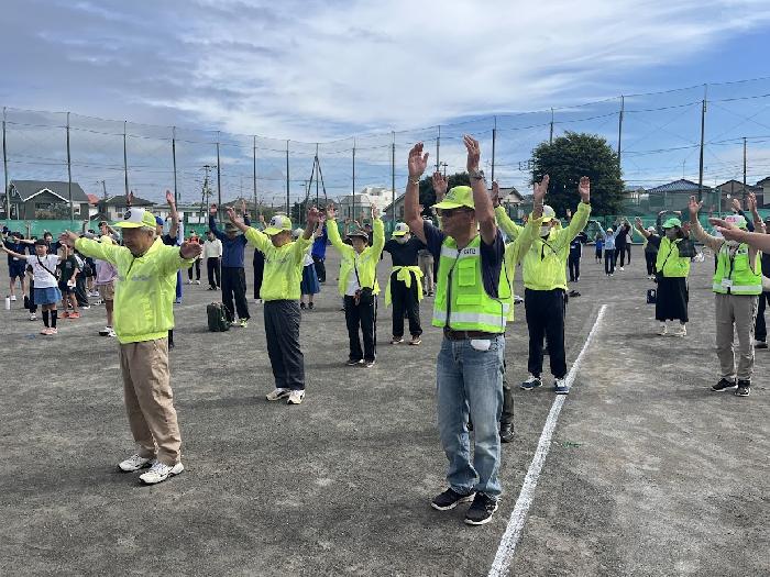 | 10月12日、連合自治会のスポフェスに参加してきました。昨日の自治会の秋のふれあい祭りの疲れもどこかに置いておいて勇んでスポーツフェスティバル会場へ。役員全員が黄色い防犯パトロール用のブルゾンに身を包み・・・ 一般参加者は普段着で来ていました。