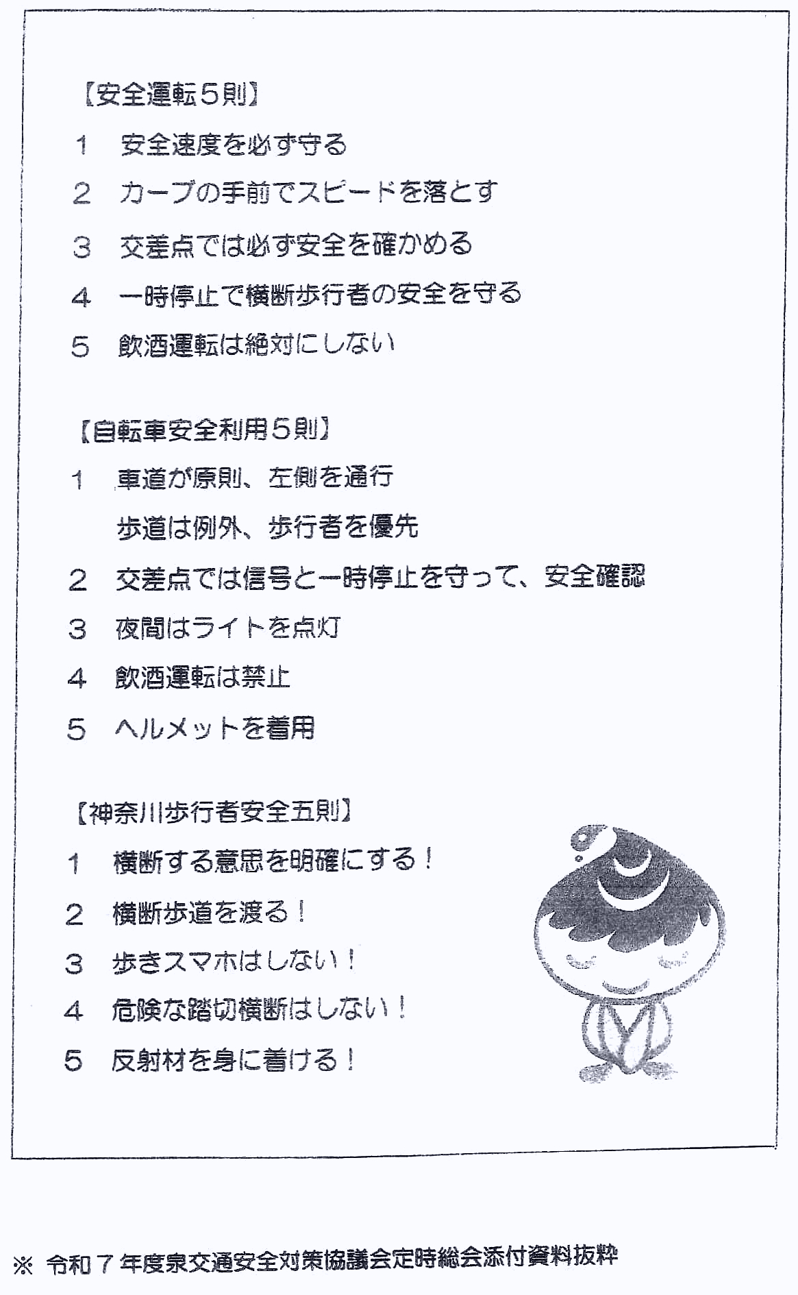 交通安全5則、自転車安全利用5則、神奈川歩行者安全5則