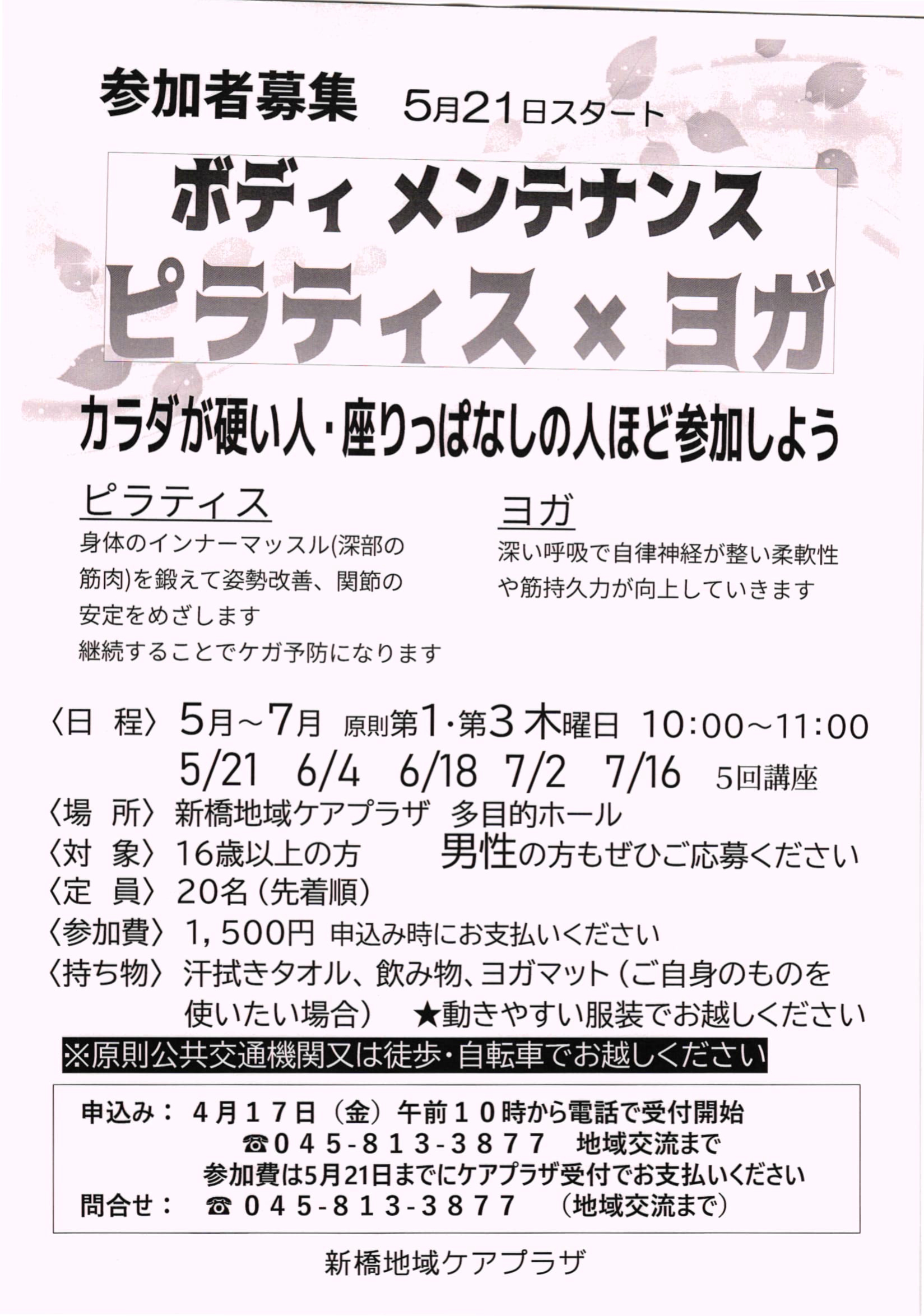 ピラティス×ヨガ参加者募集5月21日(木)スタート