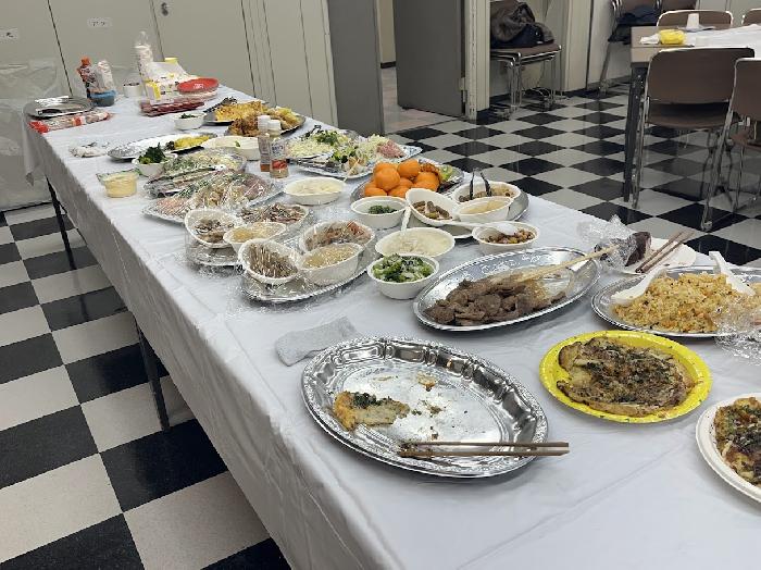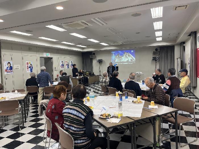 1月17日(土)自治労会館にて退職者会の柄井家交流会が行われた。早朝3時ごろから料理を作り始めたとのこと。これだけの料理を一人で?美味しい卵焼きは男性がこれだけの量を作ってきてくれたとのこと。今年度は連合自治会の会議が前段であったため、手ぶらで参加してしまった。