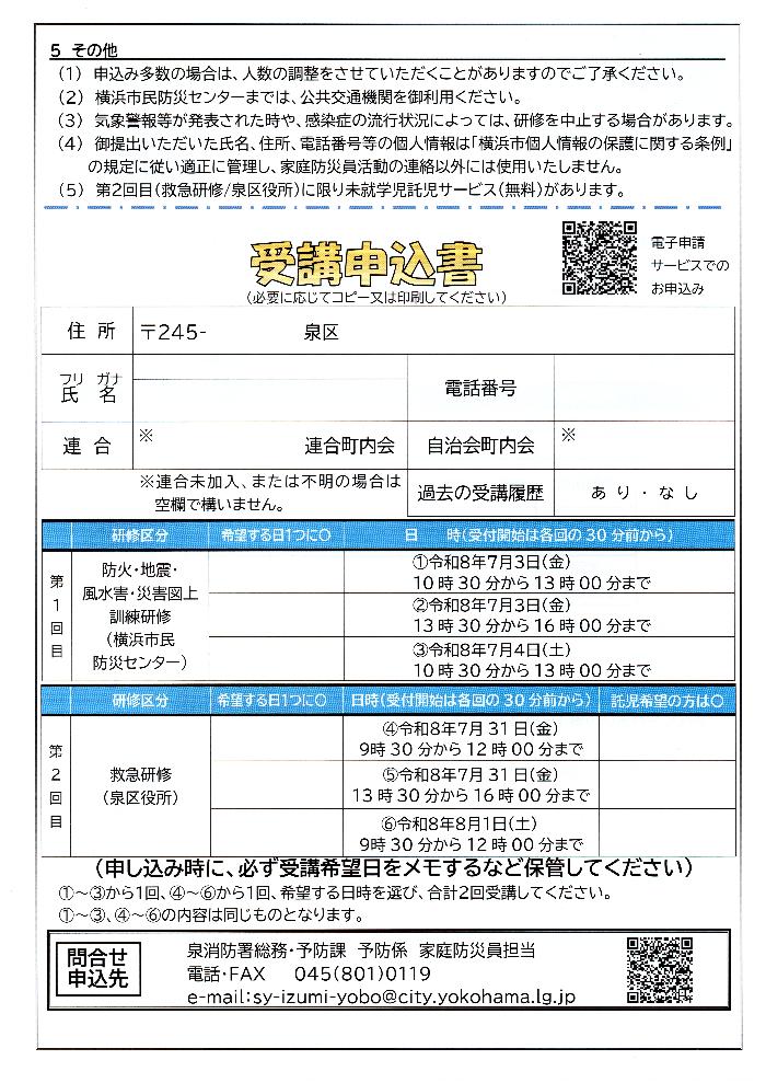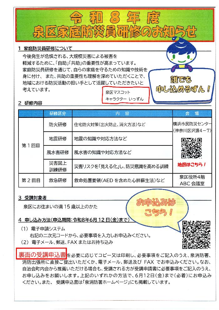 令和8年度家庭防災員研修募集要項