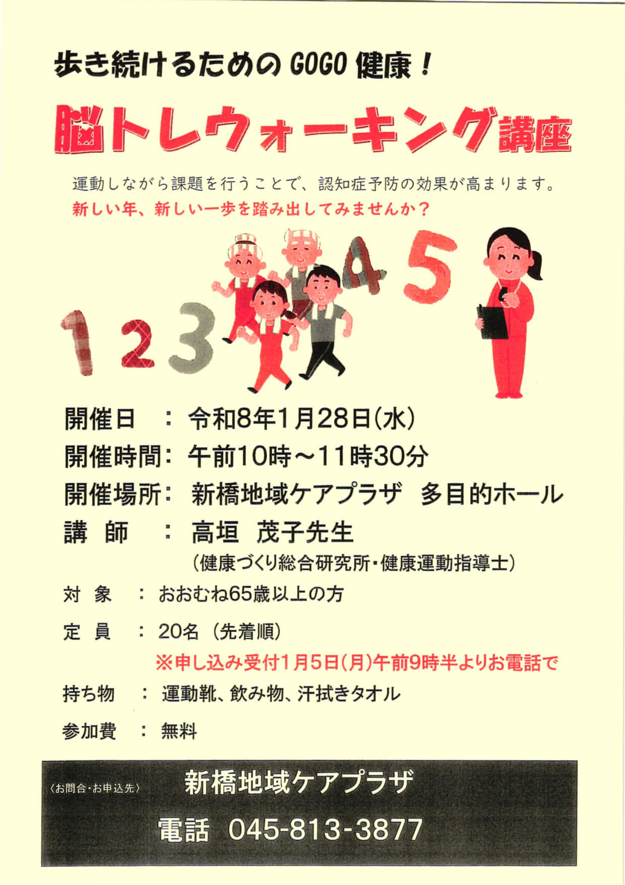 脳トレウォーキング講座・1月28日(水)10時〜11時半/新橋地域ケアプラザ