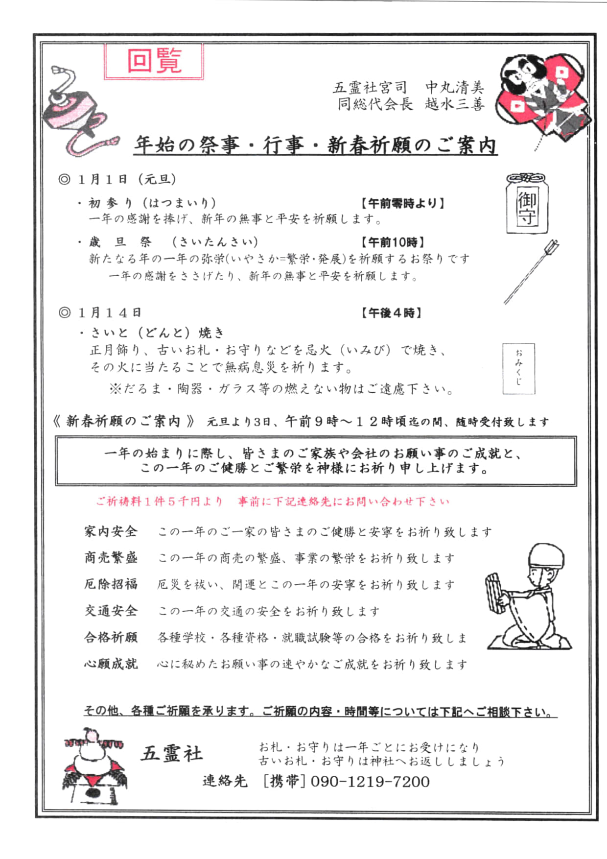 年始の祭事・行事・新春祈願のご案内・1月14日(水)16時〜さいと(どんと)焼き/五霊社