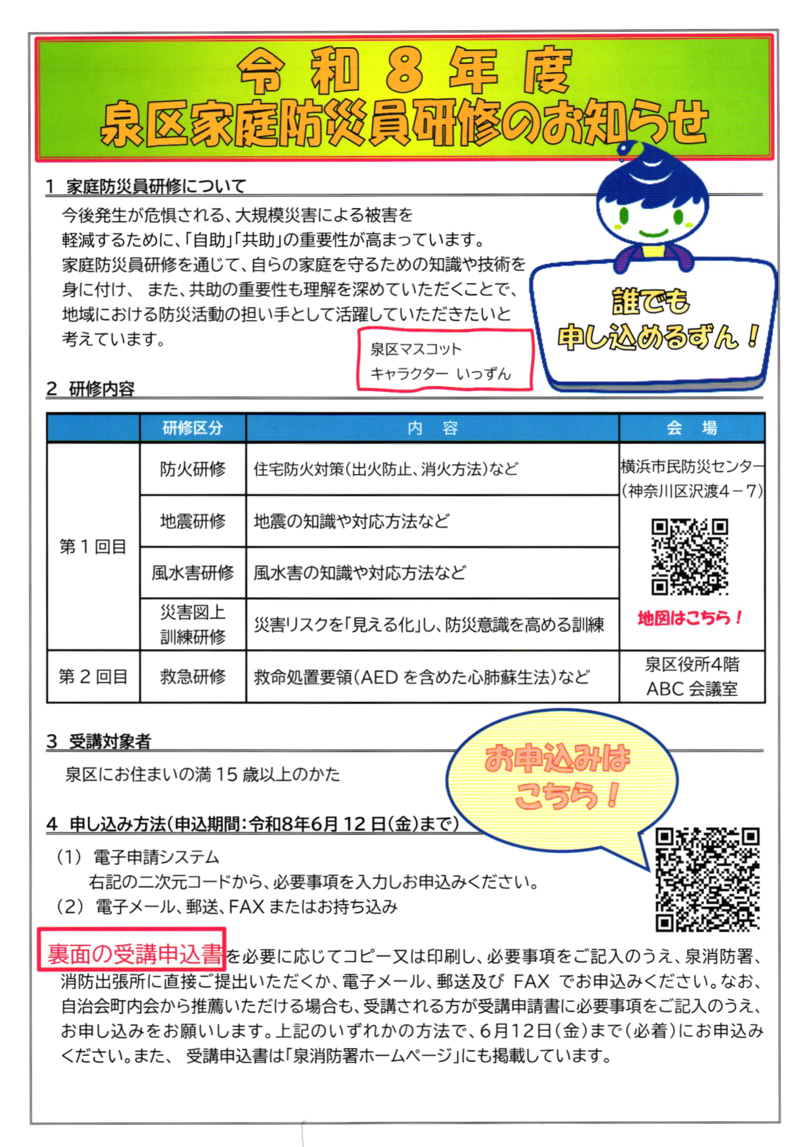 泉区家庭防災員研修 受講申込書(6月12日(金)まで)